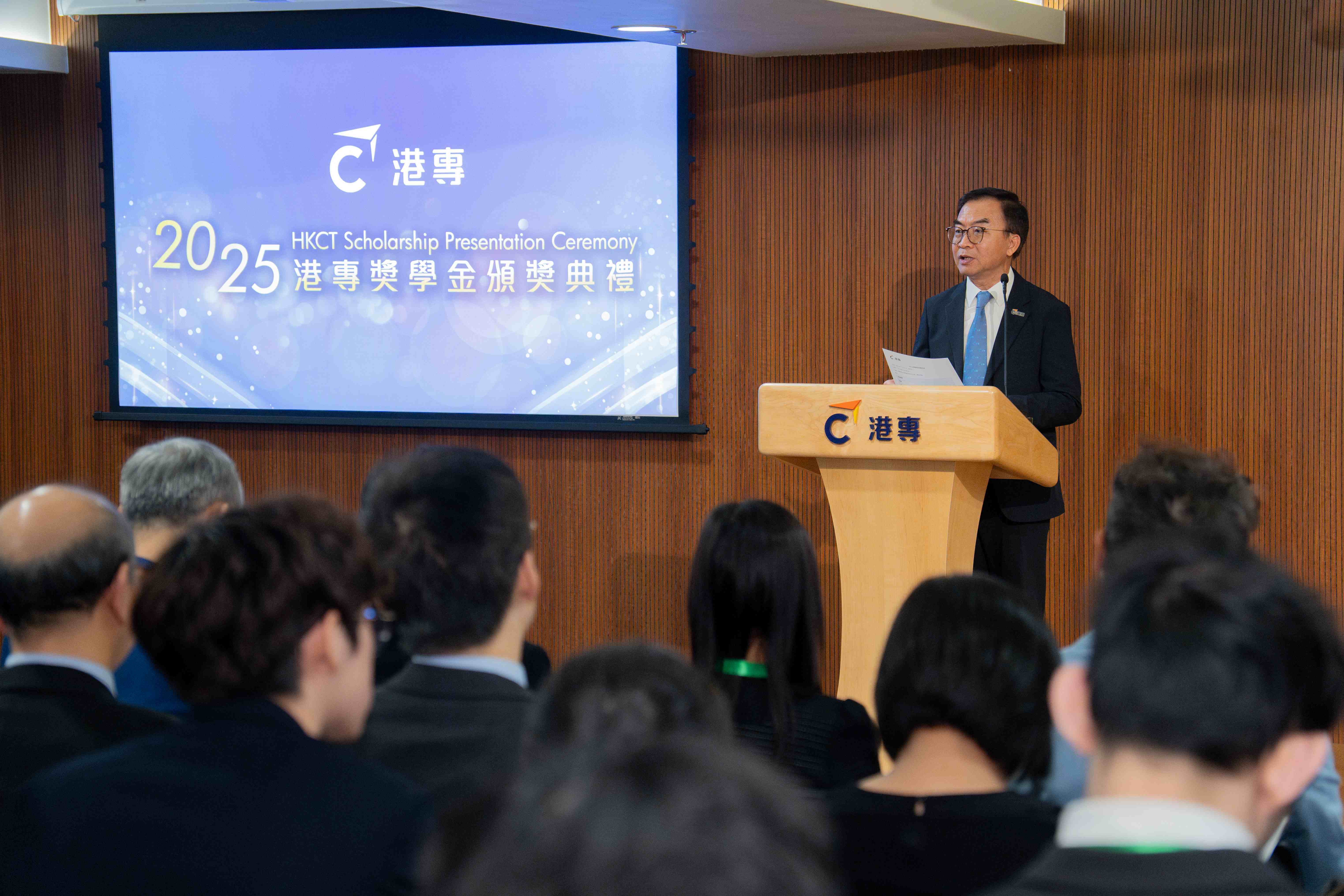 港專校長陳卓禧教授在致辭中表示:「獎學金不僅是榮譽的象徵,更是教育使命的延續。我們致力培育的,正是才德兼備、懂得關懷社會、勇於開拓創新的青年。」他特別感謝所有捐助機構及善長的慷慨支持,讓學生得以無後顧之憂地追求理想。