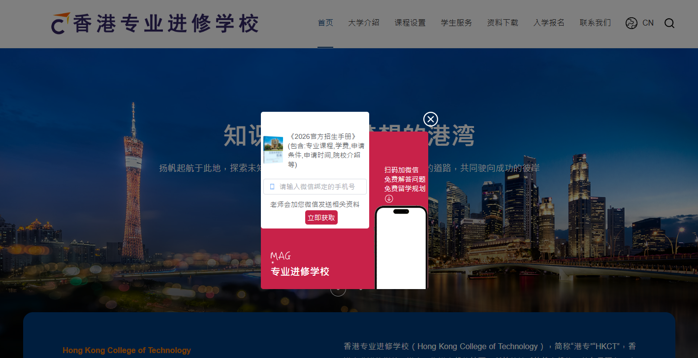 港專學院及香港專業進修學校(「港專」)近日發現一個網址為 http://hkct.jupinzan.com/ 的可疑網站。該網站未經授權而不法使用港專名義,並盜用港專官網部分資料來掩蓋虛構不實的學校及課程資訊,吸引流覽者提供私人微信綁定的手機號碼,以盜取個人資訊作進一步使用。