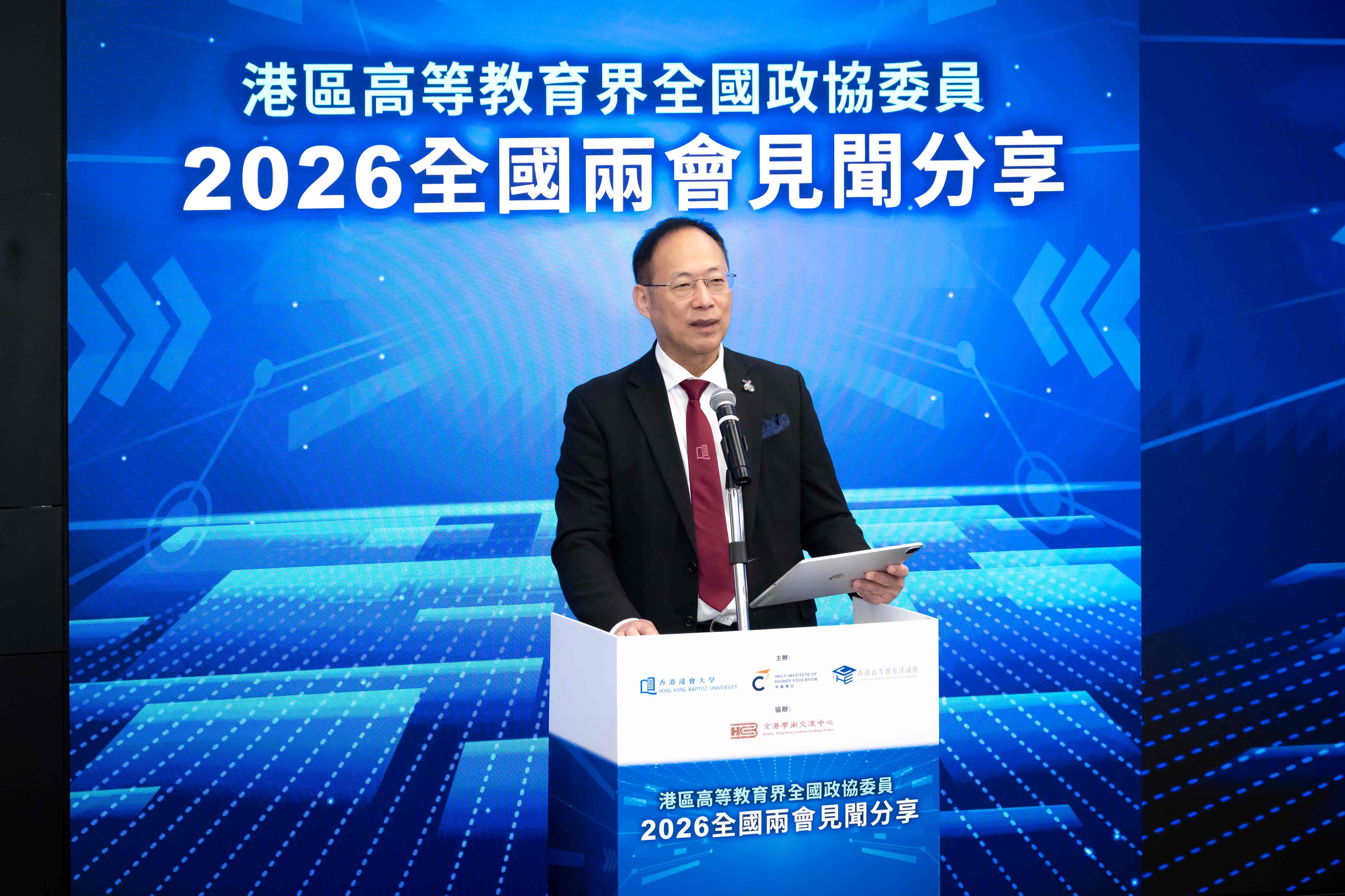 浸大校長衞炳江教授致歡迎辭時表示,2026年全國兩會正值國家「十五五」規劃開局之年,新一輪規劃將為國家未來發展確立清晰方向。是次分享會匯聚來自不同院校的港區高等教育界全國政協委員,是一個難得而高質量的思想交流平台。他期望透過是次交流,促進更深入的對話與互相啟發,讓與會者把宏觀政策精神轉化為教學、研究及個人發展的思考與行動。