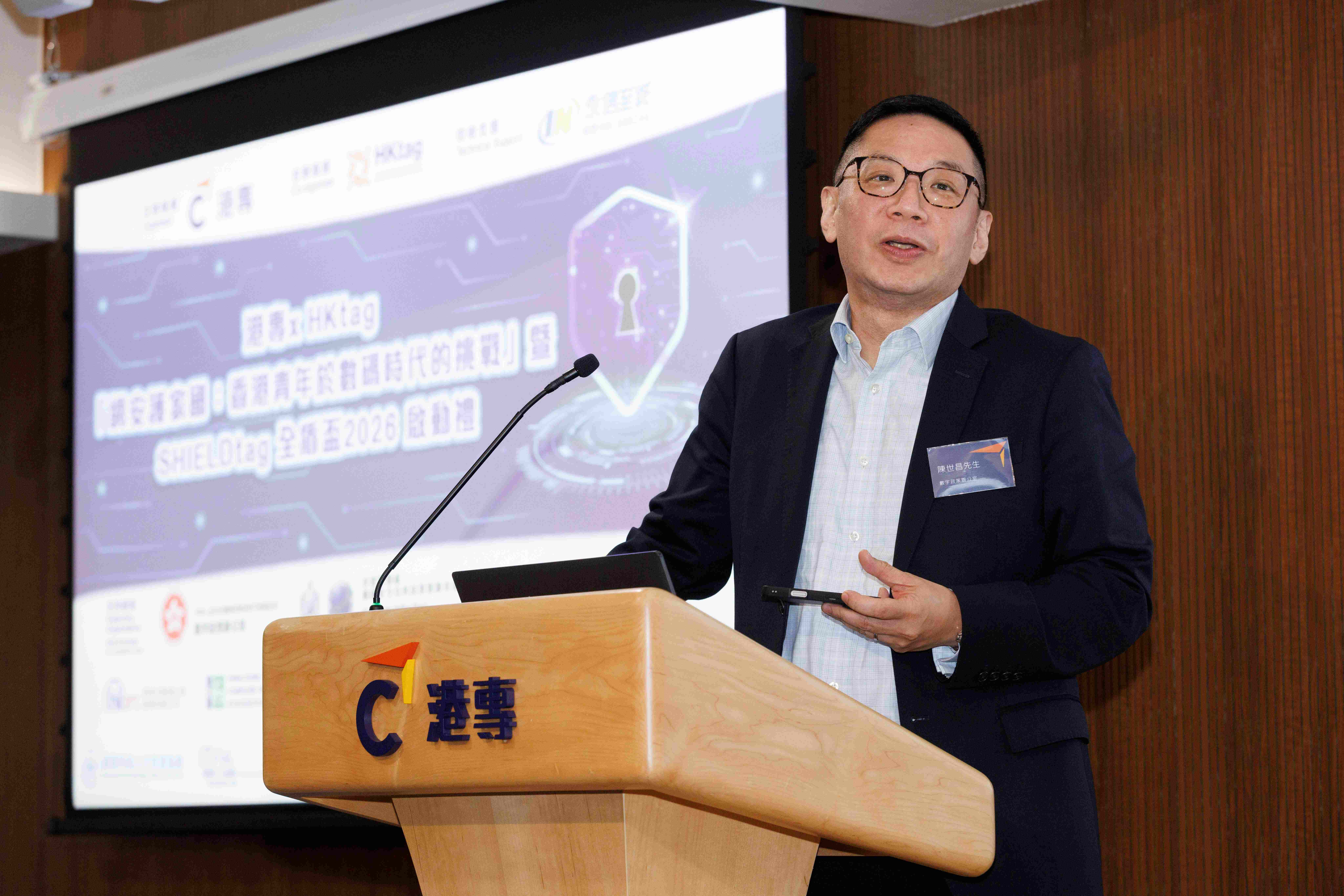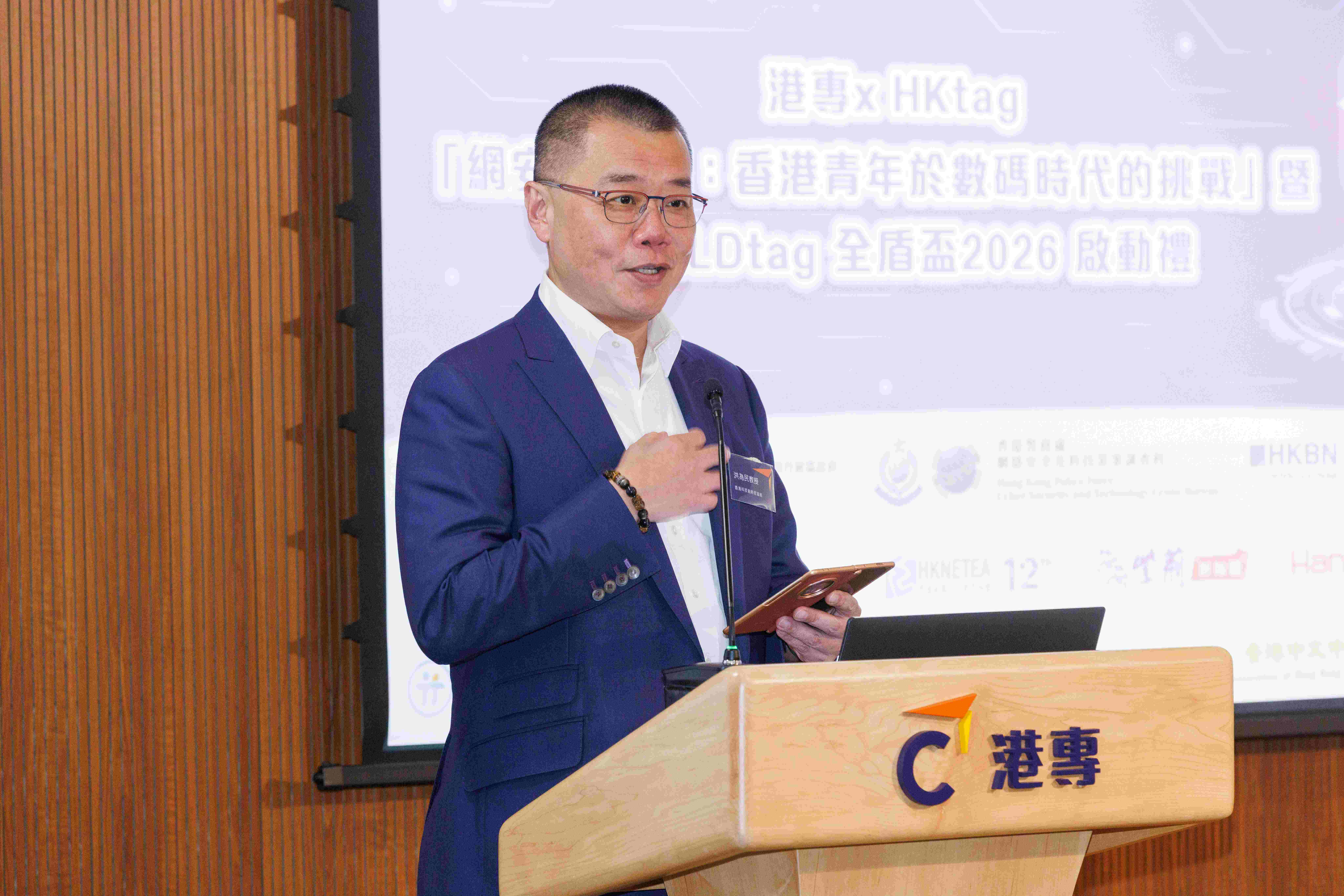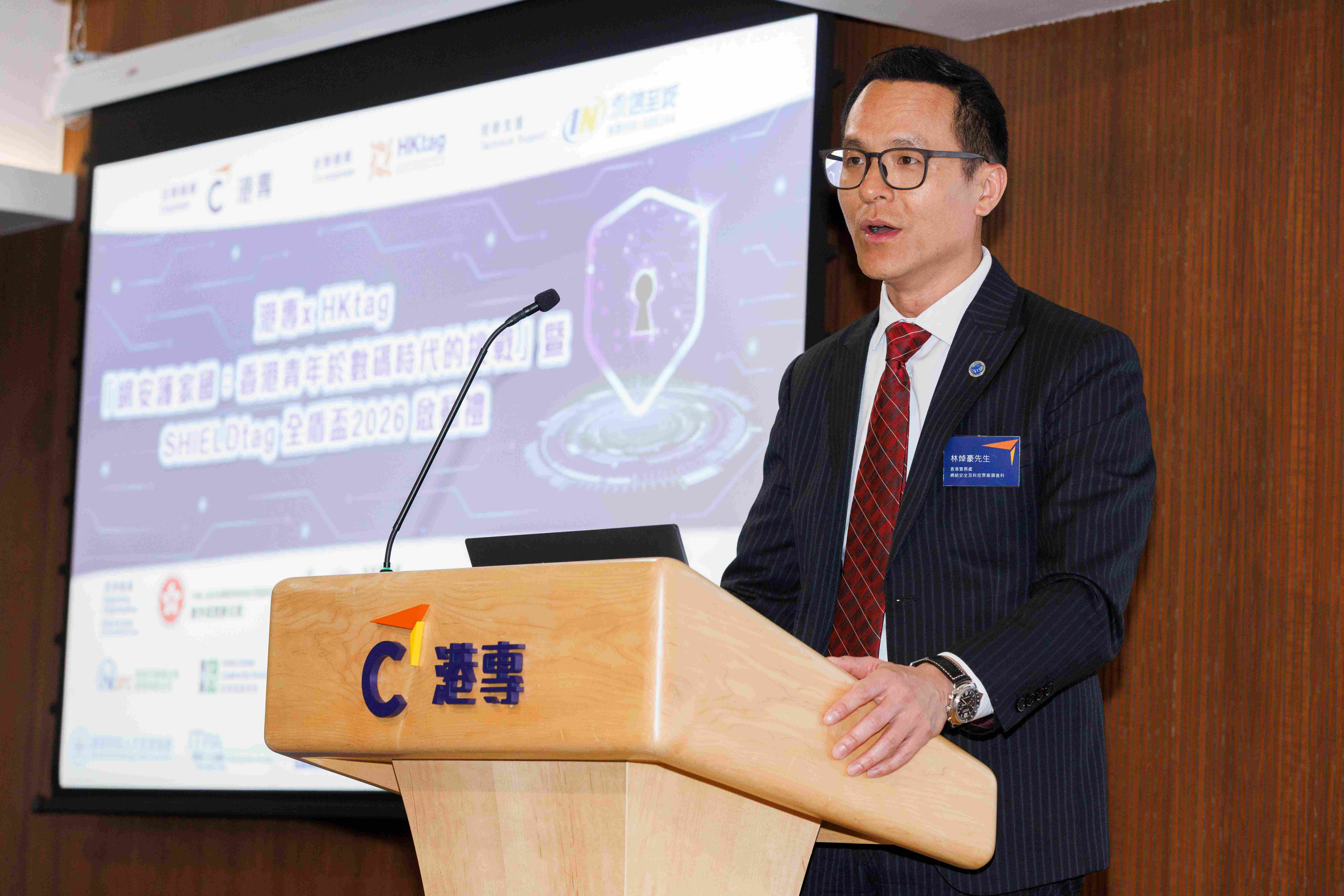 保安局副局長卓孝業先生在致辭時表示,網絡安全是國家安全的重要組成部分,亦與市民的日常生活息息相關。當年輕人懂得分辨網絡陷阱、保護個人私隱,已是在為整體網絡安全作出貢獻。他肯定港專與HKtag將網絡安全教育延伸至中學層面的跨界合作,並鼓勵學生由認知走向實踐,培養正確的網絡安全觀念。