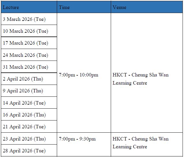 Students who successfully complete the course with an attendance rate of 70% or above and pass in assessments will be awarded a completion certificate issued by the Hong Kong College of Technology (HKCT).