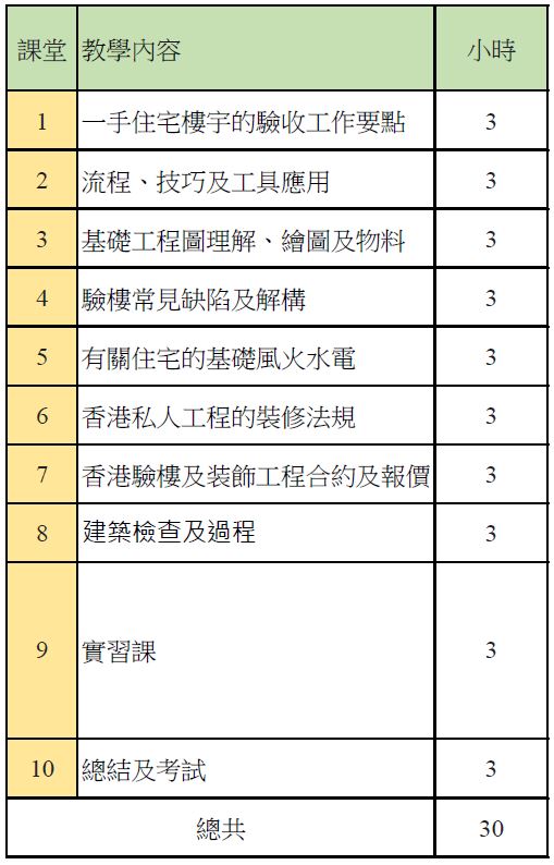 课程为有意投身验楼及楼宇相关行业人士而设,内容涵盖住宅楼宇的检验指引及注意事项、最新验楼有关的科技、基础室内装修知识、基础风火水电知识,住宅验楼相关法律知识。课程由【香港验楼师学会】委派资深导师任教,并分享过往经验及行内标准。课程更设有实习课堂,学员可透过实习课认识检验楼宇的程序和要诀,以及掌握验楼工具和仪器的应用技巧,使学员能具备必要的楼宇检验知识及实务技巧,以便投身为楼宇检验人员或应用在相关工作上。