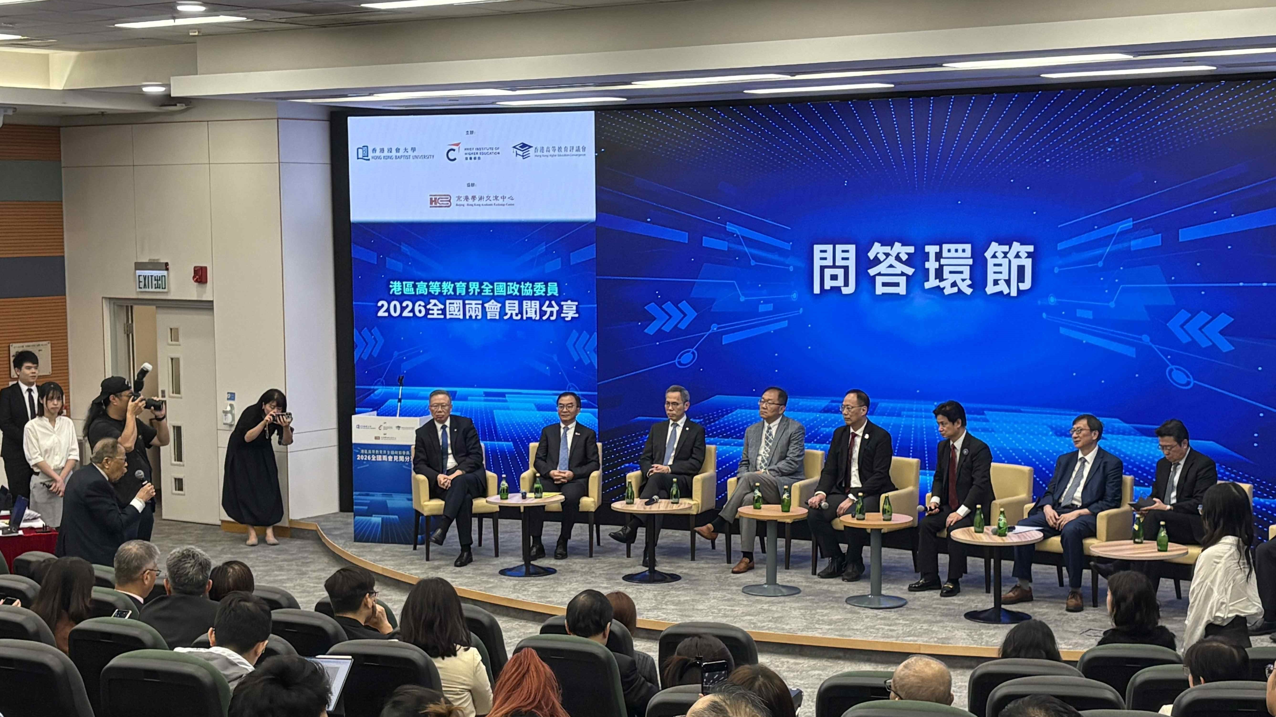 (2026年3月31日,香港)由香港浸會大學(「浸大」)、港專學院(「港專」)及香港高等教育評議會合辦,京港學術交流中心協辦的「港區高等教育界全國政協委員2026全國兩會見聞分享會」,今日上午假浸大逸夫校園林護國際會議中心夏利萊博士演講廳舉行。八所香港高等院校的港區全國政協委員匯聚一堂,分享他們親身參與今年全國兩會的所見所聞與思考,吸引逾200名高教界人士、師生及線上觀眾參與,反應熱烈。